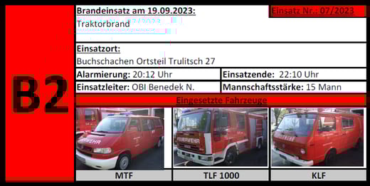 Kurz vor Prime Time im Fernsehen wurden unsere Einsatzkräfte mittels Sirene und Handyalarmierung gemeinsam mit der FF Markt Allhau zu einem Traktor-brand im Ortsteil Trulitsch alarmiert. Gleich darauf rückte unsere Feuerwehr unter dem Kommando von OBI Benedek Norbert mit allen Fahrzeugen und fünfzehn Mann zum Brandeinsatz aus.