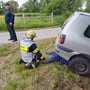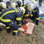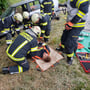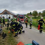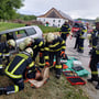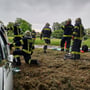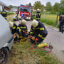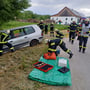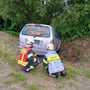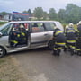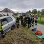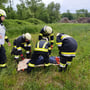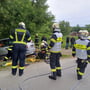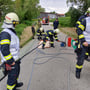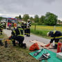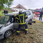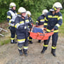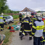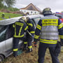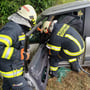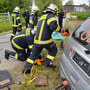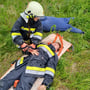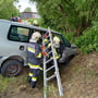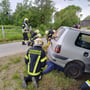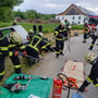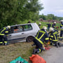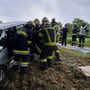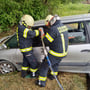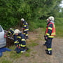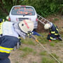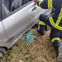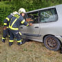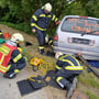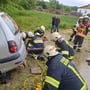 Über die Seilwinde des TLF, einer angebrachten Leiter und diversen Keilen wurde das Fahrzeug vor dem Abrutschen gesichert. Die KLF-Gruppe übernahm die Rettung der eingeklemmten Person unter dem PKW mittels Hebekissen. Die TLF Gruppe rettete die eingeklemmte Person im Fahrzeug mittels Hydraulischem Rettungssatz. Gleichzeitig wurde ein zweifacher Brandschutz aufgebaut (HD-Rohr des TLF, Feuerlöscher) sowie diverse Sicherungsmaßnahmen durchgeführt (Batterie abklemmen, Ölauffangwanne, Airbag-Sicherung, usw). Die verletzten Personen konnten vorschriftsmäßig aus dem Unfallauto befreit werden und wurden – so die Übungsannahme – dann der Rettung übergeben. In weiterer Folge wurde das Auto dann noch mittels TLF-Seilwinde aus dem Graben gezogen und in eine sichere Abtransport-Position gebracht.