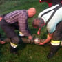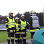 Nach dem Einsatzbefehl des Gruppenkommandanten wurde die Einsatzstelle abgesichert, der zweifache Brandschutz aufgebaut und sämtliche Geräte die bei einem solchen Einsatz gebraucht werden (Auto wurde mit mit Unterlegskeile stabilisiert, Handwerkzeug zum abklemmen der Batterie hergerichtet, Glassäge und Federkörner vorgenommen, Verletzte Person durch einen Feuerwehrmann betreut) hergerichtet.