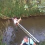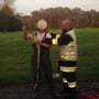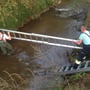 Als erstes rüstete sich ein Kamerad mit einer Wathose aus, er wurde mit Tragegeschirr und Abseilachter beim Abstieg gesichert! Dann wurde gemeinsam die Ölsperre aufgebaut, und HLM Marth Hannes erklärte noch ein paar wichtige Einsatztaktiken die man beim Aufbau und Verwendung einer Ölsperre beachten sollte.