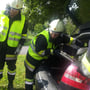 Übungsannahme war ein PKW-Unfall mit eingeklemmter Person. Bei dieser Übung sollte es nicht unbedingt um die Bedienung des hydraulischen Rettungssatzes gehen, sondern viel mehr sollten die Entwicklung der technischen Gruppe bei einen solchen Einsatz geübt werden.