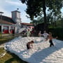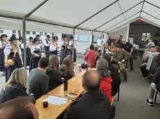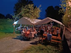 Am letzten Samstag im Juni (29.6) lud die Ortsfeuerwehr zum abendlichen Sommerfest (früher „Waldfest“) auf und neben der Open-Air-Bühne im Luftgrobm ein. Bei hohen Außentemperaturen wurde die Bühne und der Vorplatz für das Fest entsprechend hergerichtet und geschmückt. Es wurden 2 Zelte aufgestellt, zahlreiche Heurigen-garnituren, eine Schank, Weinkost, Bar, Hüpfburg, Feuerstelle usw. Sogar für die Fußballfans war man bereit und hat mit akrobatischer Leistung in schwindelnder Höhe einen Beamer samt Leinwand fürs Public Viewing der Euro 2024 installiert. Das „Waldfest“-Ambiente war durch Location in freier Natur, durch die Holzarchitektur der Bühne und die rund 40 aufgestellten Birkenstauden ebenfalls gegeben. Wahrscheinlich hat nur noch die Schießbude von anno dazumal gefehlt.