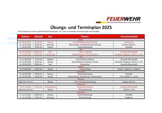 2025 Übungs- und Terminplan FF Buchschachen