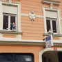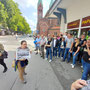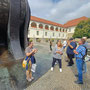 Unser Kamerad Martin Dovjak war gleichzeitig Chauffeur und sorgte für den sicheren Transport auf unserer Fahrt in den Süden und zurück. Zuerst holten wir uns ein reichhaltiges Frühstück im Parkcafe in Gralla, bevor wir um ca 10 Uhr die Grenze nach Slowenien passierten und kurz danach Maribor (Marburg) erreichten.Nach den ersten Schnappschüssen und einer Getränkepause wurden wir von einer Fremdenführerin abgeholt, die uns durch die Innenstadt Maribors führte und neben der Historie und den gezeigten Bauwerken auch aktuelle Verbindungen herstellte und so manche Anekdote und lustige Geschichte zum Besten gab. In Erinnerung blieben uns die Pflastersteine, die von der Bevölkerung fallweise auch zweckentfremdet werden, die Säule vom Heiligen Florian (der auch für die Feuerwehr Bedeutung hat), die Liebe zum Wein und die Verbindung zum alten Österreich (Habsburgermonarchie). Glänzen durften wir auch mit unserem Wissen über die österreichische Marine, als wir deren Marburger Admiral „Tegetthoff“ (der sich bei uns eher nach „Dick und Doof“ anhörte) namhaft machen konnten. Nach der Führung hatten wir Freizeit, die jeder für sich nutzen konnte, wobei die meisten schon wieder Hunger hatten und auf etwas Kulinarisches aus waren.