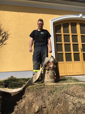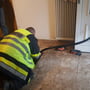 Einsatzstelle absichern, Zuflussrohr mittels HD-Kanalratte gereinigt