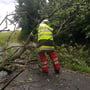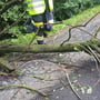 Einsatzstelle absichern, Baum und Baumteile mittels Motorkettensäge zerkleinern und am Straßenrand ablegen, Straße säubern und wieder für den Verkehr frei geben.