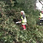 Absichern der Einsatzstelle, Baum mittel Motorsäge zerkleinern und am Straßenrand ablege, Straße wieder für den Verkehr frei geben.