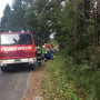 Einsatzstelle absichern, PKW mittels Seilwinde aus dem Graben gezogen